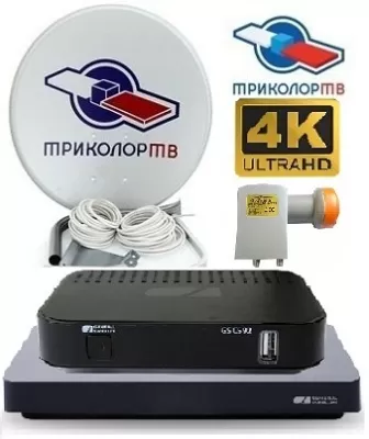 Полный комплект оборудования для просмотра различных каналов «Триколор ТВ» на двух телевизорах.