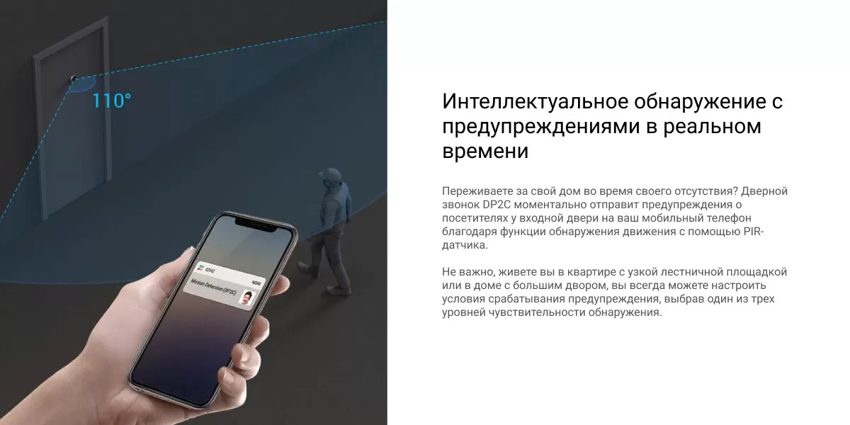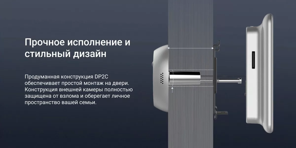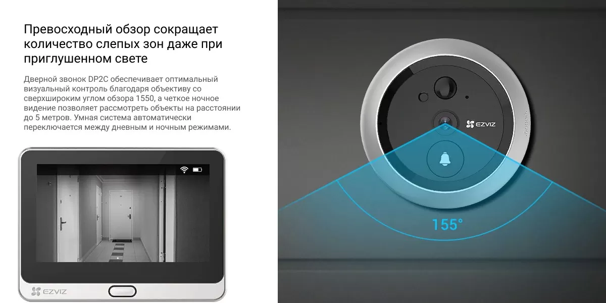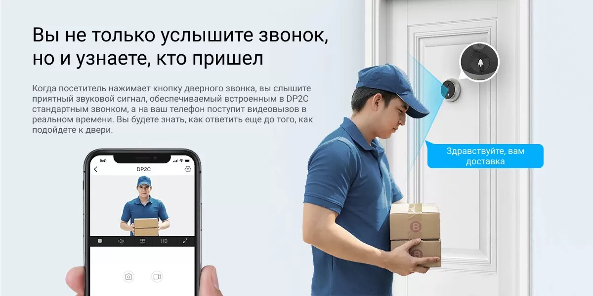 Комплект «два-в-одном» DP2C, включающий камеру и дверной звонок, характеризуется стильным современным дизайном и предусматривает множество расширенных функций для охраны вашей входной двери. Вам понравятся его четкость изображения, интеллектуальные функции, а также возможность видеть посетителей с помощью внутреннего цветного монитора. Кроме того, приложение EZVIZ позволяет получать предупреждения о подозрительной активности на пороге вашего дома на мобильное устройство."