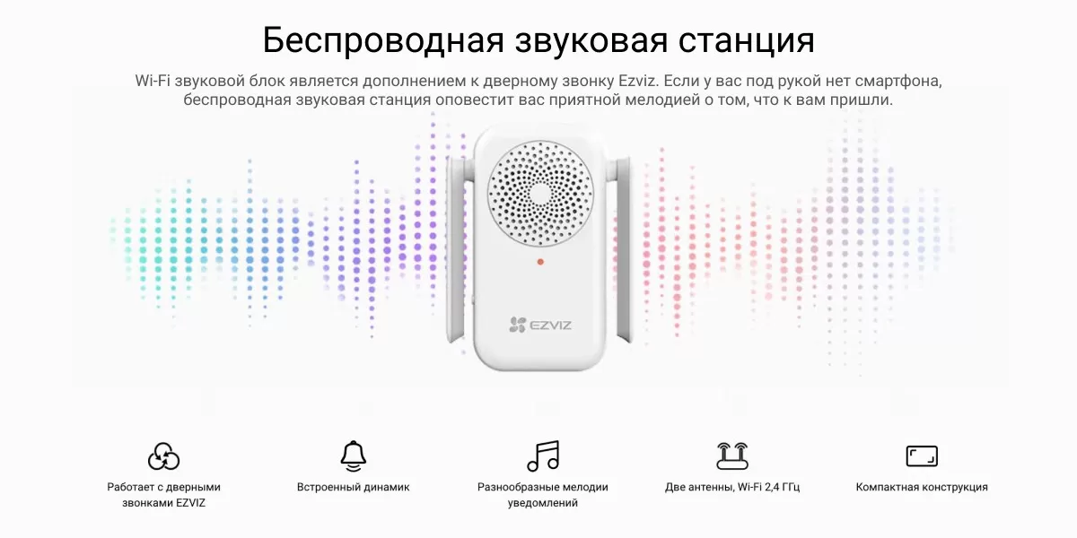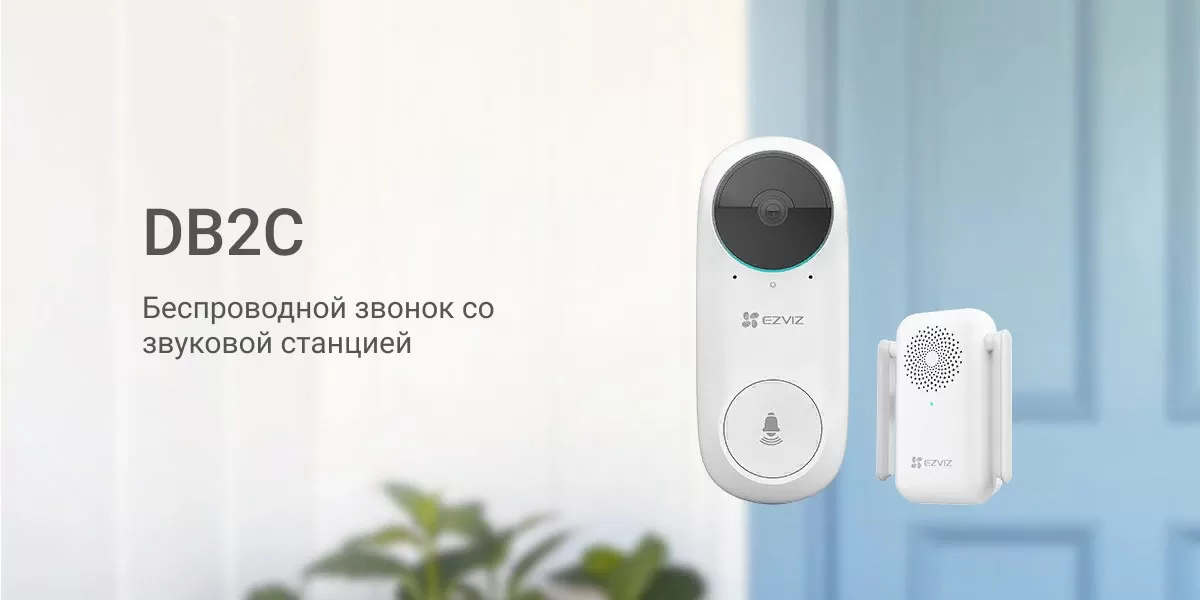 Комплект DB2C включает интеллектуальный беспроводной дверной видеозвонок и дополнительный звуковой модуль. Отсутствие проводных подключений позволяет вам видеть и слышать посетителей откуда угодно. Интеллектуальные функции видеозвонка DB2C сделают вашу жизнь безопаснее и удобнее!"