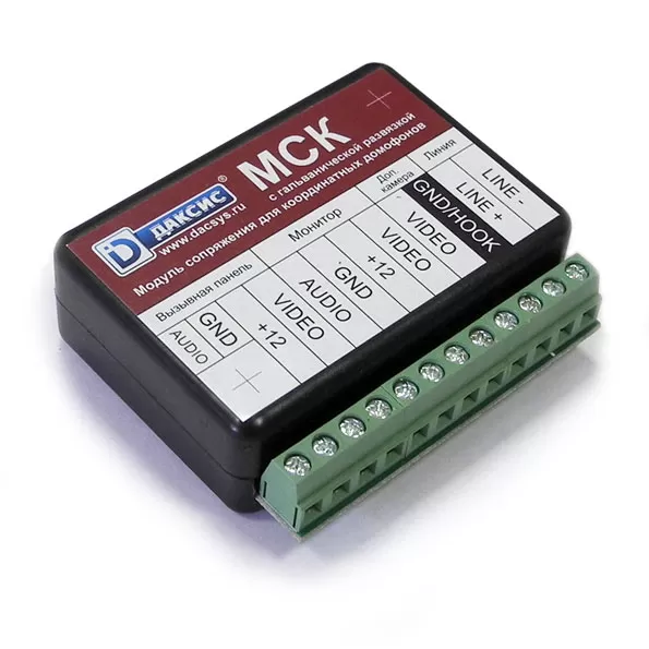 Модуль сопряжения индивидуального видеодомофона с общеподъездным многоквартирным домофоном (далее - модуль сопряжения) предназначен для подключения индивидуального видеодомофона к линии связи общеподъездного домофона с координатной системой адресации абонентов (Визит, Цифрал, Элтис), для приема вызовов от него и открывания подъездной двери с помощью стандартных функций видеодомофона.