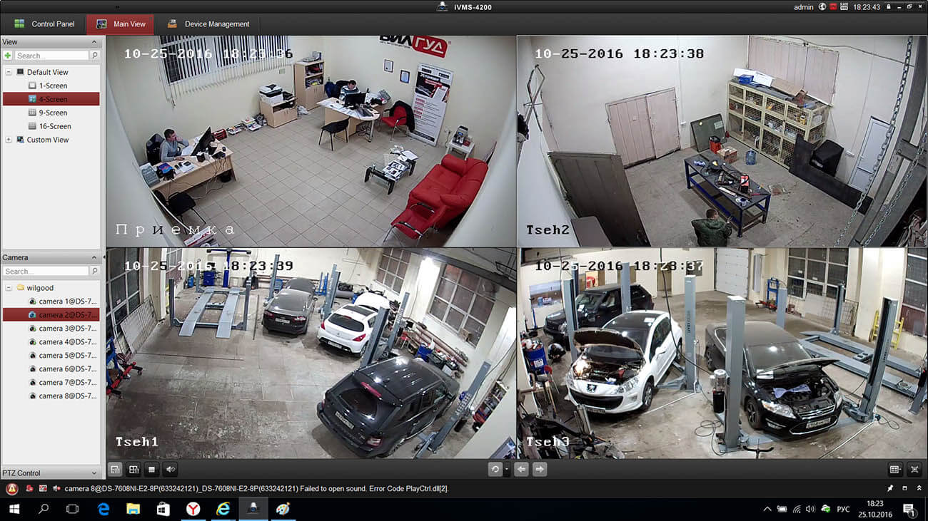 Бюджетный вариант на 4 камеры. Две камеры контролируют ремонтную зону, одна камера смотрит за складом и еще одна камера в зоне приема заказов. В отличии от остальных, камера в зоне "приемки" имеет встроенный микрофон, что позволяет вести видео и аудио запись. Такая камера помогает урегулировать споры, конфликты , которые регулярно возникают на автосервисе.